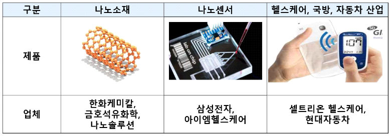 이처럼 나노센서는 헬스케어, 자동차, 전자, 로봇산업 등의 핵심부품으로 타 산업의 적용 및 융합을 통해 기존 제품의 가치를 획기적으로 증대시키며 전방산업의 성장 동력으로 주목받고 있다.